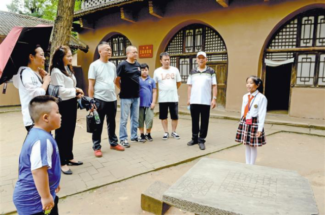 8月9日,延安枣园革命旧址,“小小讲解员”为游客讲述革命先辈的故事。来源:延安文明网